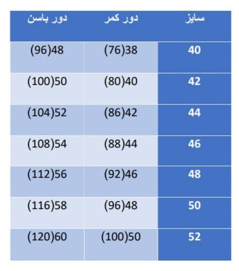 🔹 سایزبندی: ۴۰ تا 58